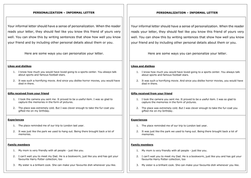 How To Personalize An Informal Letter Igcse English As A Second Language Teaching Resources