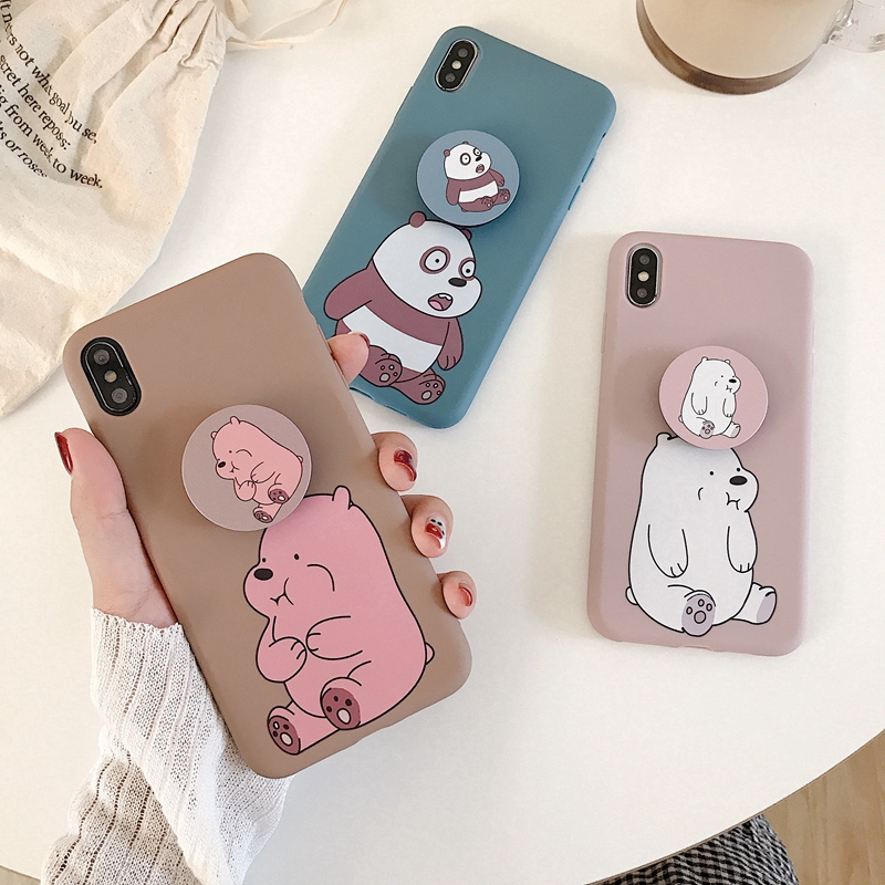 Iphone X Xs Max Xr 6 6s 7 8 Plus Case Cute Soft Silicon Tpu Bare Bears Phone Cover Airbag Bracket Shopee Indonesia