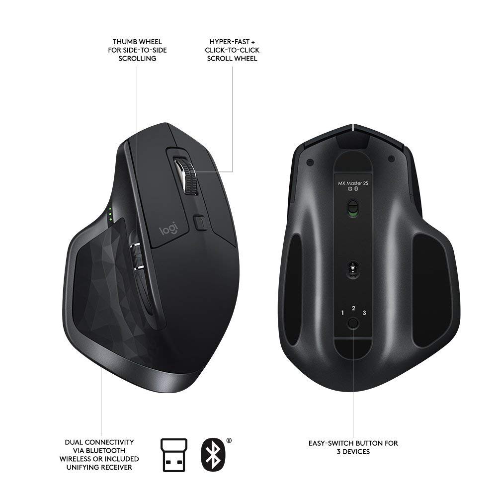 Amazon In Buy Logitech Mx Master 2s Wireless Mouse Multi Device Bluetooth Or 2 4ghz Wireless With Usb Unifying Receiver 4000 Dpi Any Surface Tracking 7 Buttons Fast Rechargeable Laptop Pc Mac Ipad Os Black Online At